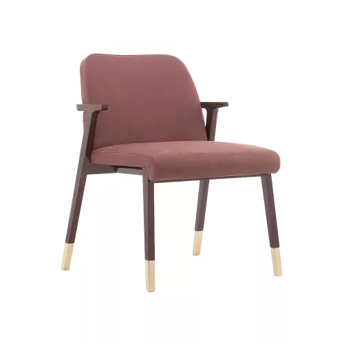 The Tenuo chair combines refined elegance with exceptional comfort, inspired by iconic 20th-century design. Its solid beech wood frame, accented with brass ferrules, adds warmth and sophistication. With upholstered seat and backrest available in various fabrics or faux leather, Tenuo is perfect for contemporary HoReCa interiors.