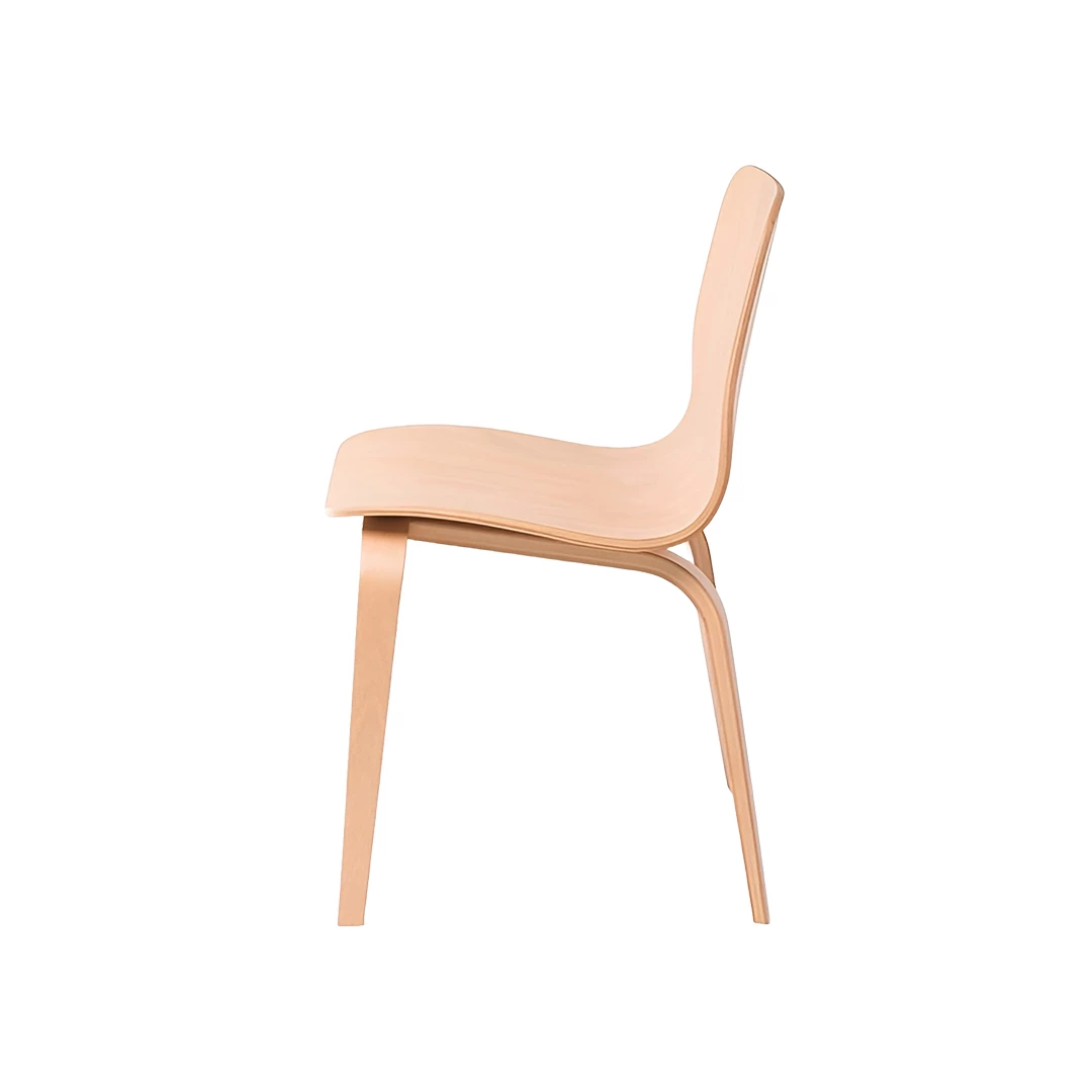 The Tommy chair showcases contemporary elegance with advanced wood-bending craftsmanship. Its seat and legs feature subtle thickness variations, emphasizing thin plywood edges while ensuring strength. Smooth, organic lines create a modern and inviting form. Crafted from beech plywood and available in multiple stain colors, it’s ideal for stylish horeca spaces.