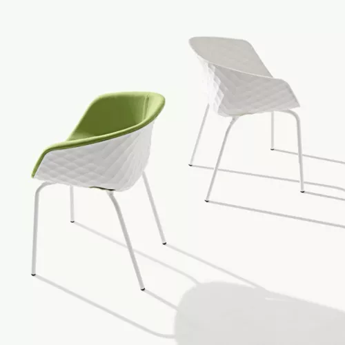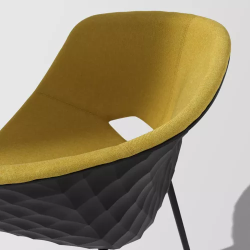 Uno 594M is a horeca chair with armrests, combining comfort and resilience. It features a powder-coated or chromed steel frame, a durable polypropylene outer shell, and an upholstered inner shell in professional fabrics or faux leather. Customizable finishes make it suitable for a variety of hospitality interiors, from contemporary to classic.