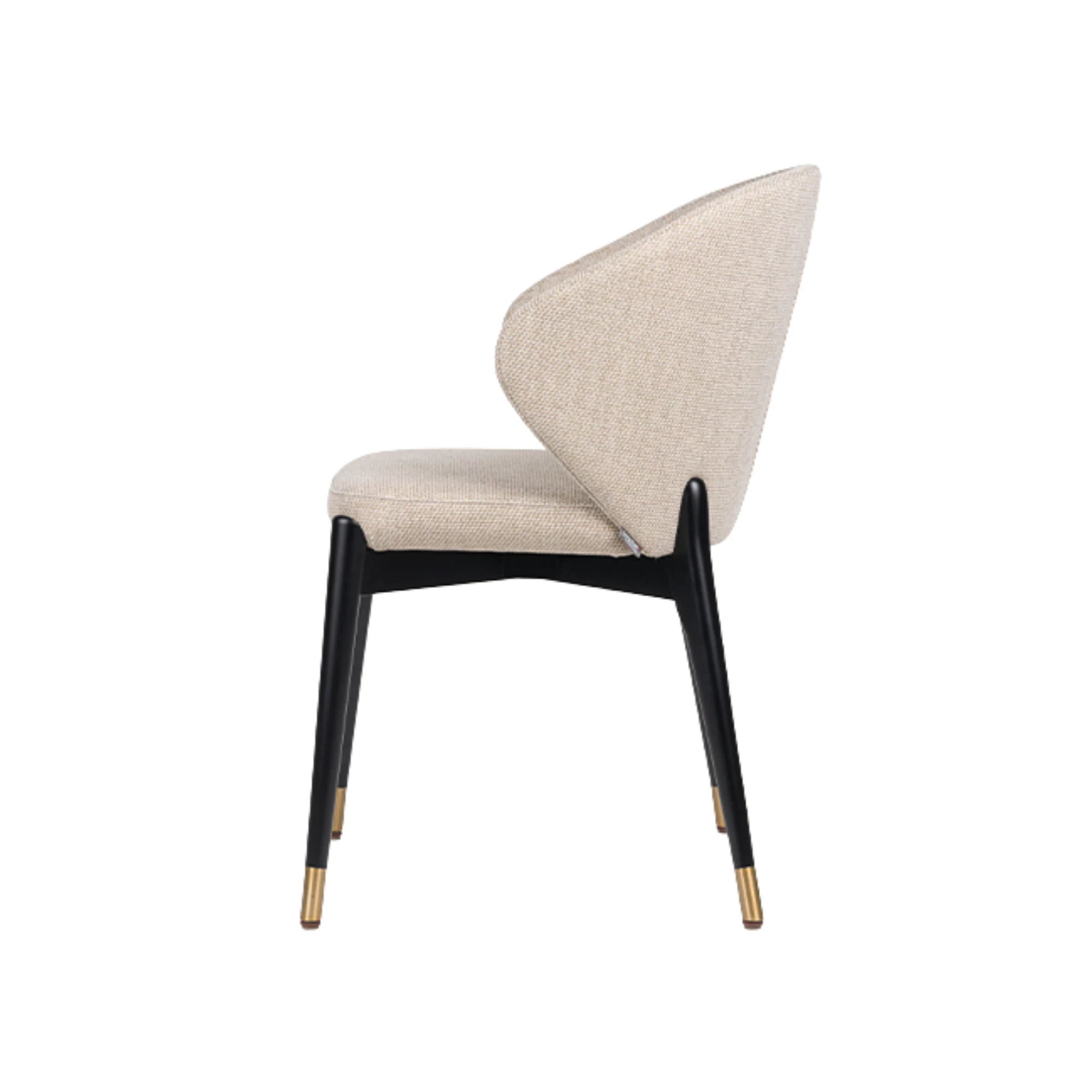 Velveton Round A is a modern upholstered chair with a curved backrest for enhanced comfort. Featuring both seat and backrest upholstered in durable fabrics or faux leather, it's built for intensive use. The sturdy beech wood frame, available in various stains, makes it ideal for any HORECA location and a variety of interior design styles.