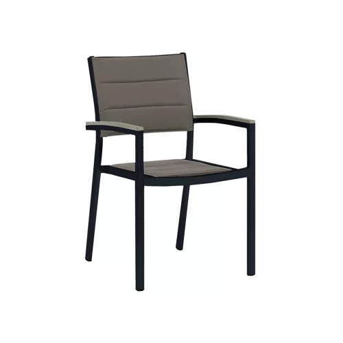 The Vicki Aluminium Textilene Chair is a perfect blend of elegance, comfort, and durability. Made with a strong welded Aluminium frame using 38×19×1.2 mm tubes, it ensures both stability and lightweight handling. The surface is powder-coated for enhanced protection and long-term outdoor use. The seat and backrest are padded with soft doll cotton, offering exceptional comfort. The breathable textilene fabric makes it ideal for warm weather, while the PS wood armrests add a stylish and natural look. Whether placed on a terrace, balcony, or garden, the Vicki chair brings both function and flair to any setting.